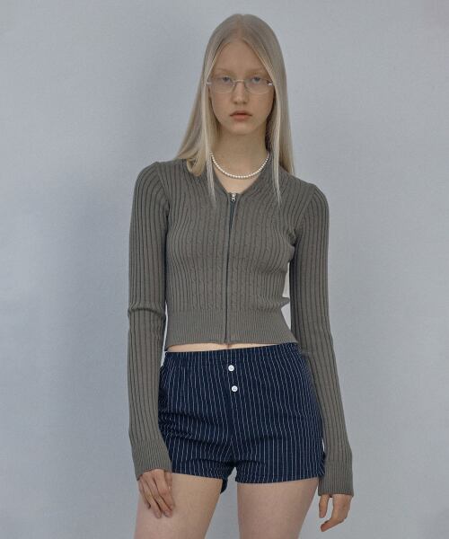 [SCULPTOR] Cable Collar Knit Zip-Up Moss