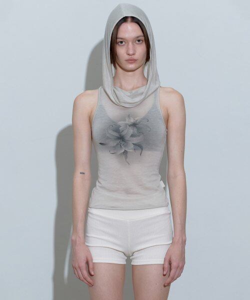 [SCULPTOR] Cowl Sleeveless Hoodie Natural