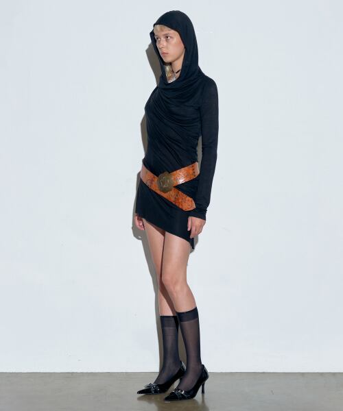 [SCULPTOR] Two Way Draped Hoodie Washed Black