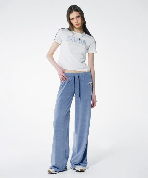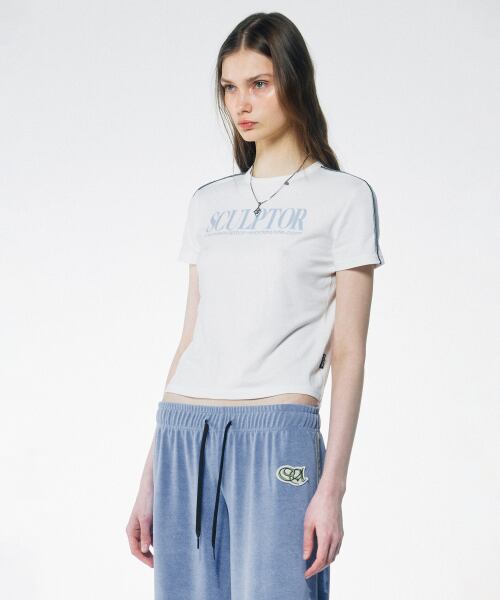 [SCULPTOR] Classic Logo Piping Crop Top White