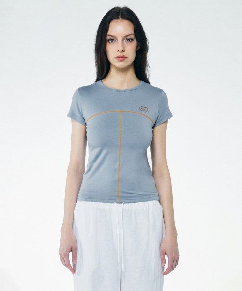 [SCULPTOR] Contrast Stitch Tee Dusty Blue