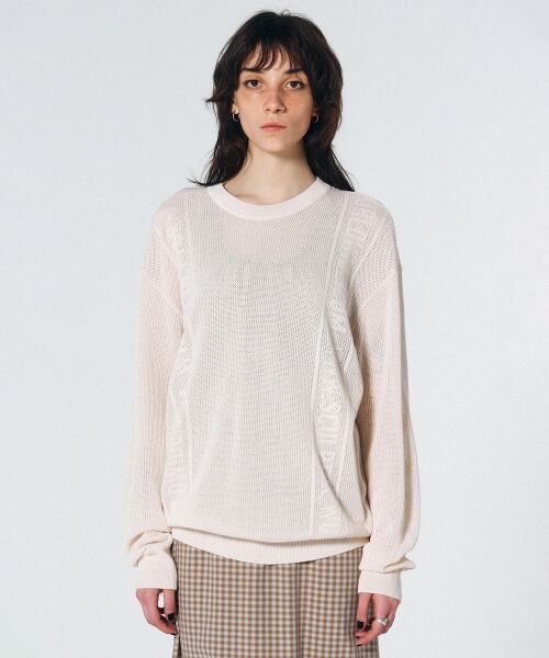 [SCULPTOR] Striped Mesh Sweater Ivory