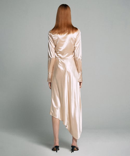 [SCULPTOR] Glossy Satin Shirt Pale Beige