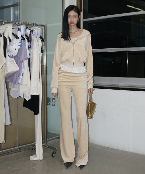 [SCULPTOR] Velour Shirring Lowrise Pants Butter