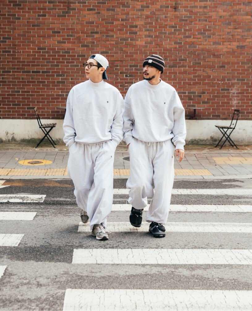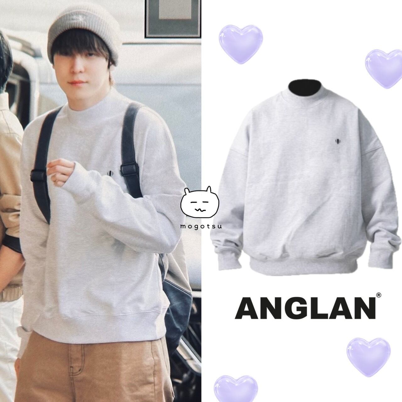★ATEEZ ユンホ 着用!!【ANGLAN】Wappen Half-Neck Sweat Shirt - Melange Grey
