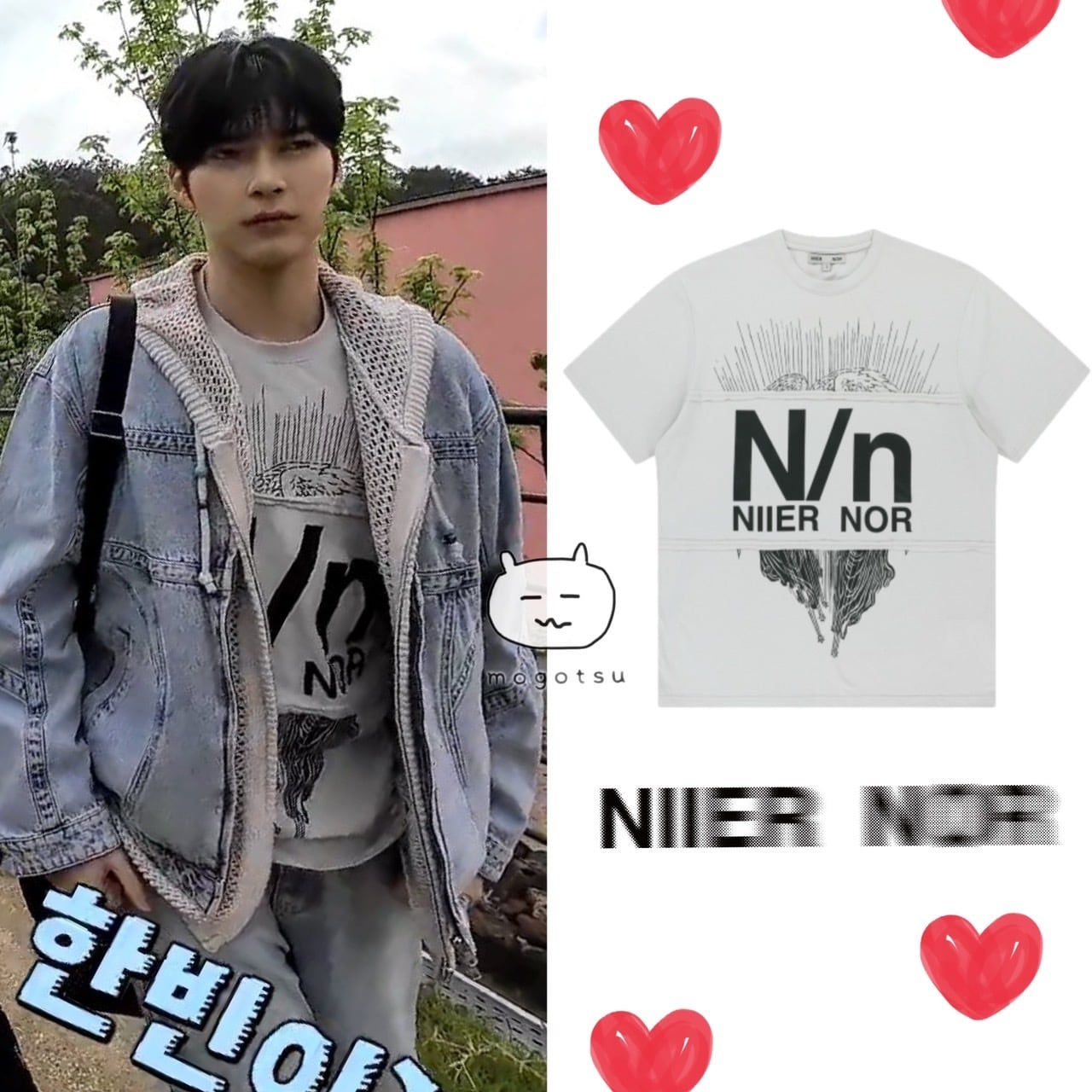 このNIIER NORのNN CUT OUT TEEは、韓国の人気アイドル、ハンユジンも着用している注目アイテム!ボーンカラーで、シンプルながらも個性的なカッティングが特徴です。肩から腕にかけてのカットアウトデザインが、ユニークなアクセントになっています。