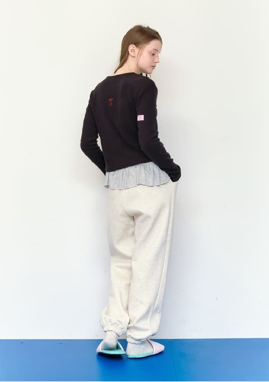 背面中央にミニリボン刺繍と袖ラベルを適用し感度の高いディテールを誇ります。