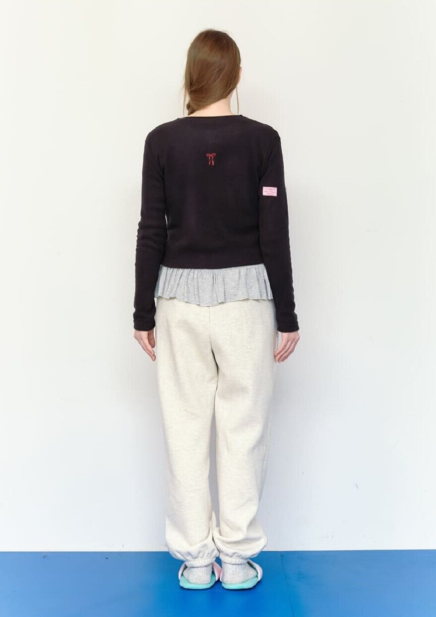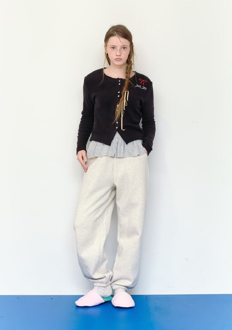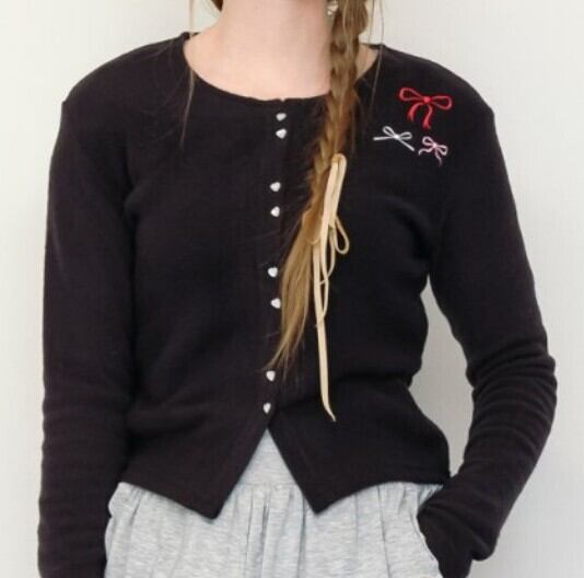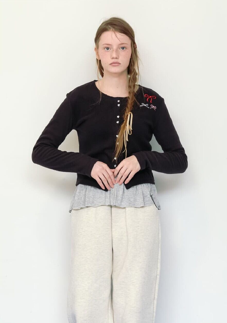 ★BLACKPINK ジス 着用!!【RONRON】HEART BUTTON 3 RIBBON CARDIGAN BLACK