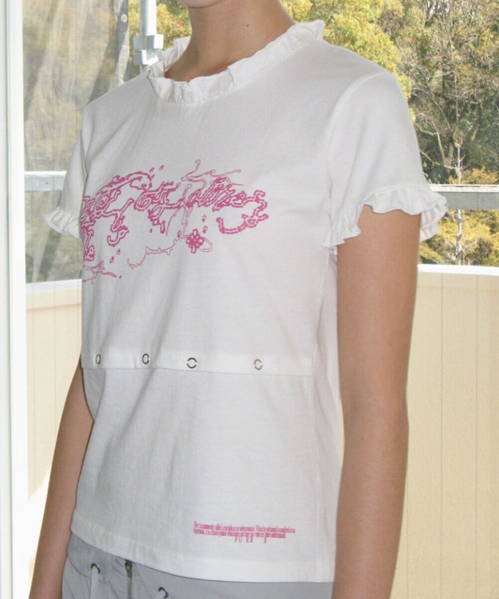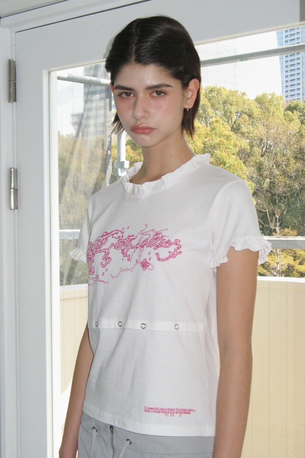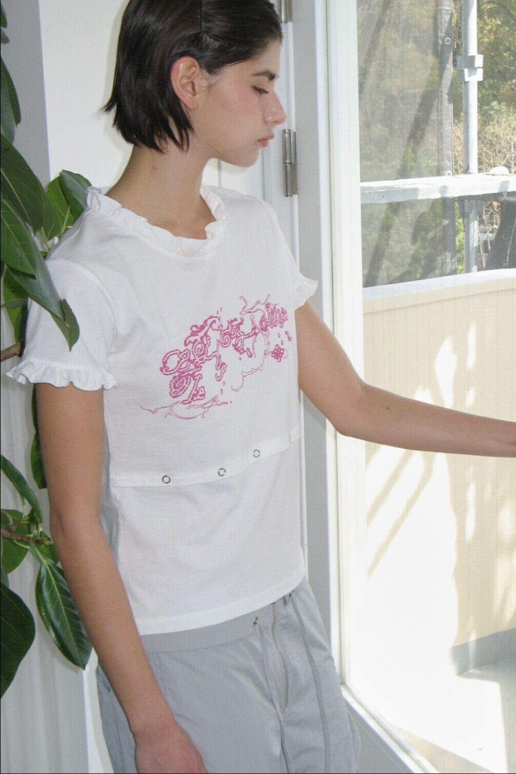 ★KISS OF LIFE ハヌル 着用!!【TYPESERVICE】Ruffled Button T-Shirt [Off White]