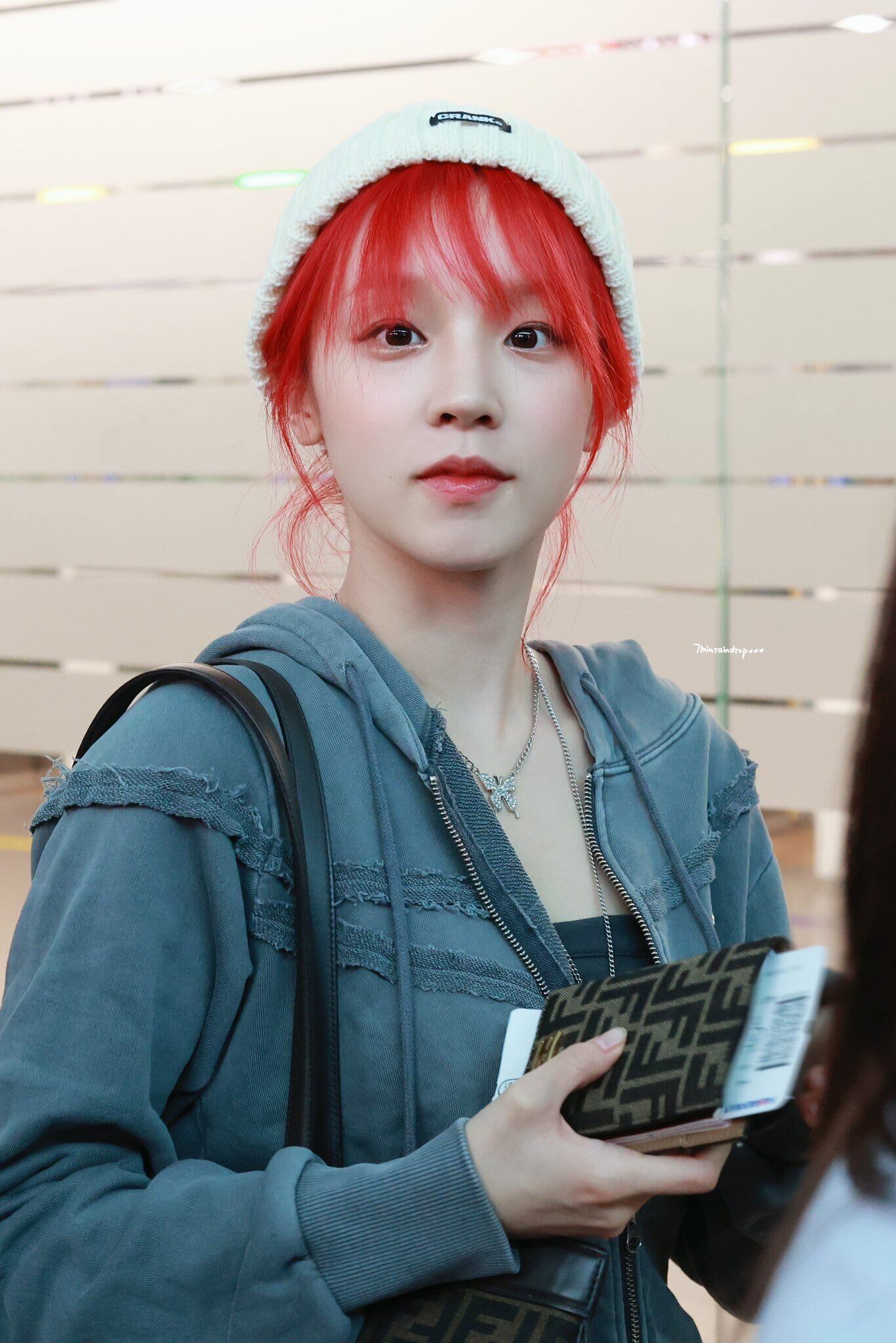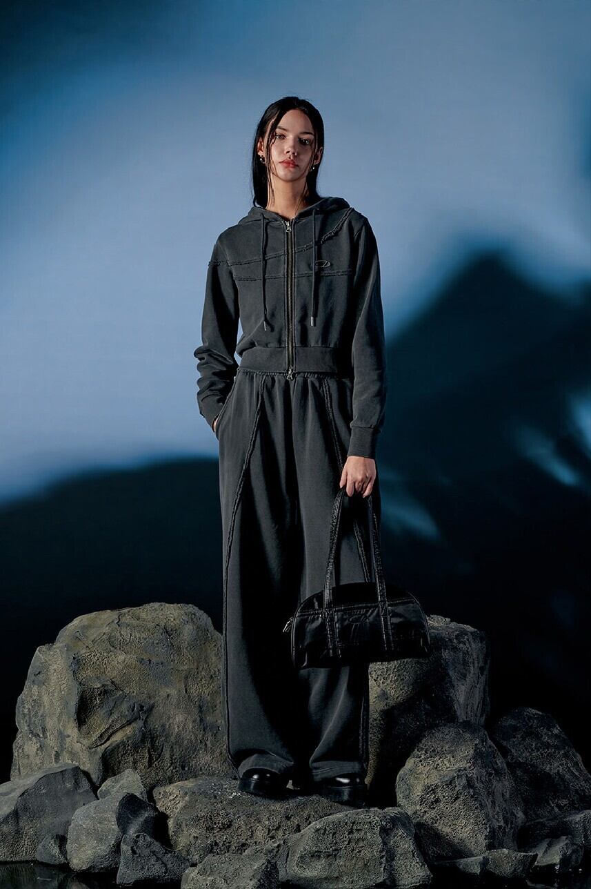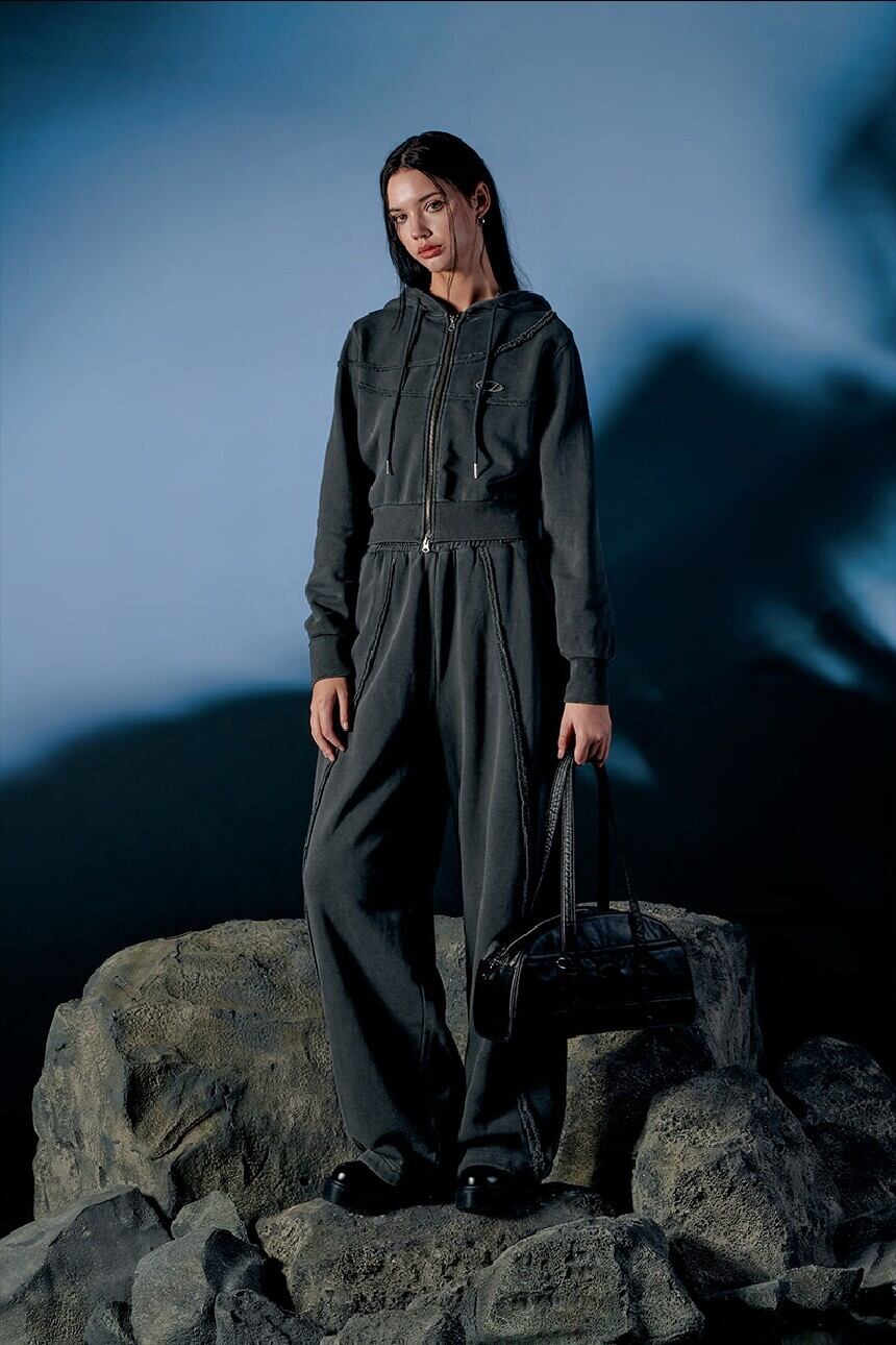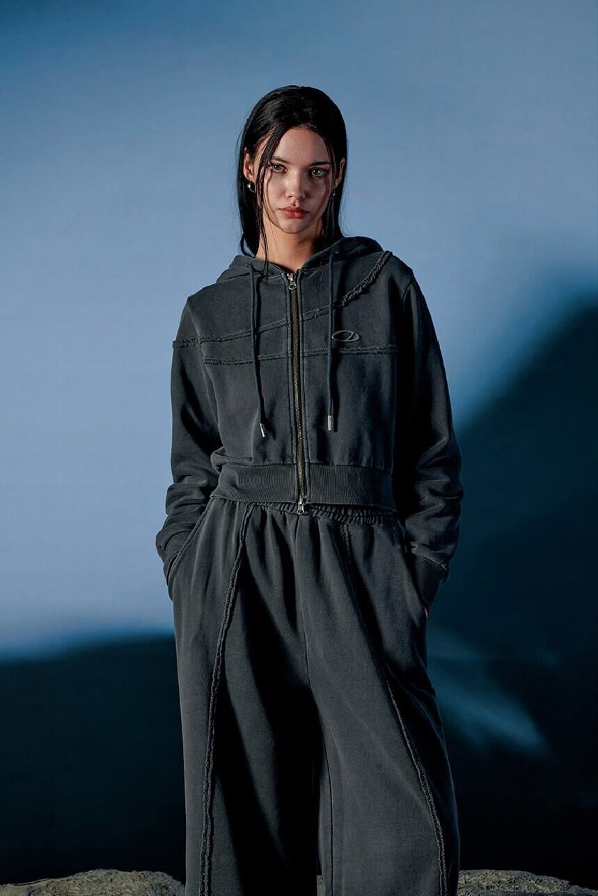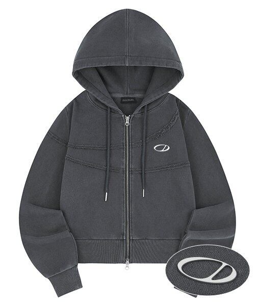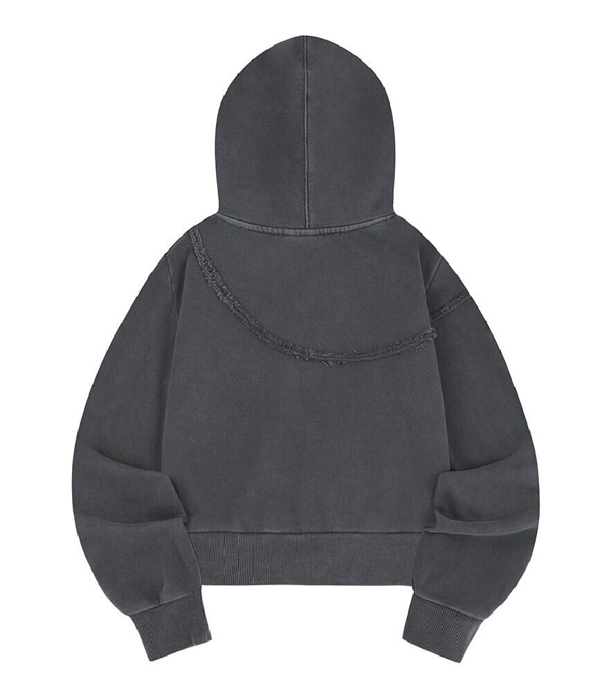 ★(G)I-DLE ウギ 着用!!【ODD STUDIO】Pigment Cut-Off Hoodie Zip-Up - charcoal