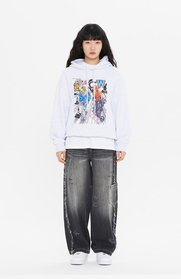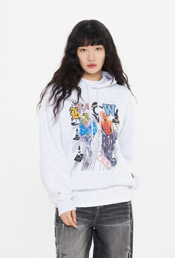 ★(G)I-DLE ウギ 着用!!【ROMANTIC CROWN】WALK ON GRAPHIC HOODIE_LIGHT GREY