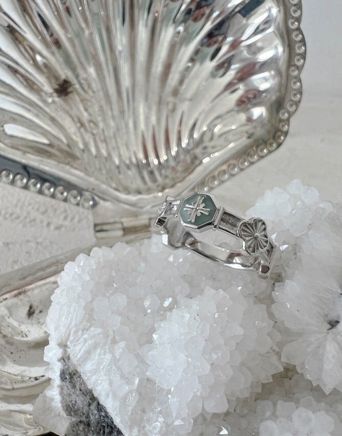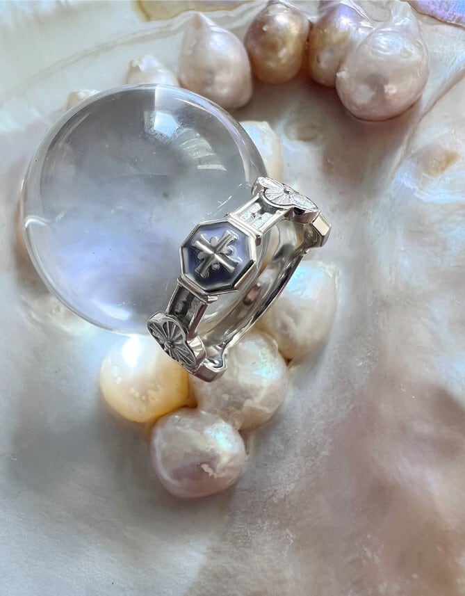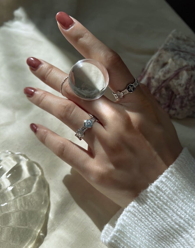 Gothic ver.3 Cross angle flower miss ring 従来のゴシックとカトリックのモチーフを合わせ、ミューゼアルならではの方法でアレンジしたミスリングです。 構造的なディテールが魅力的で、様々な色のレジンが選択でき、様々な雰囲気で スタイリングが可能です。 カラーはホワイトメッキ1色にレジン色はブラック、スカイブルー、オリーブ、ラベンダーの4色のうち お選びいただけます。 オプション外メッキをご希望の場合は、Q&Aを残してください。 Color · White plating Material - 925 silver. resin Width 3.14mm ~ 6mm Ring Size - 3호 ~ 20호 Notice 1. ミュゼアールの全商品は注文時に製作される商品で、注文後最大10日以内に製作 および発送されます。 余裕を持って期限を置いて注文してください。 2. 注文後製作商品のため、製作開始の際は単純な心変わり及び返品はいたしかねます。 3. 刻印作業は刻印文句及び刻印書体の選択は問い合わせしてください。