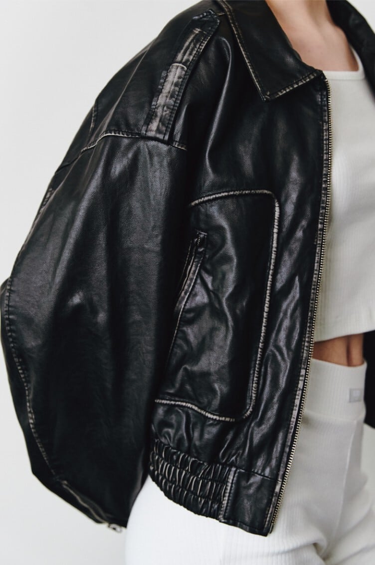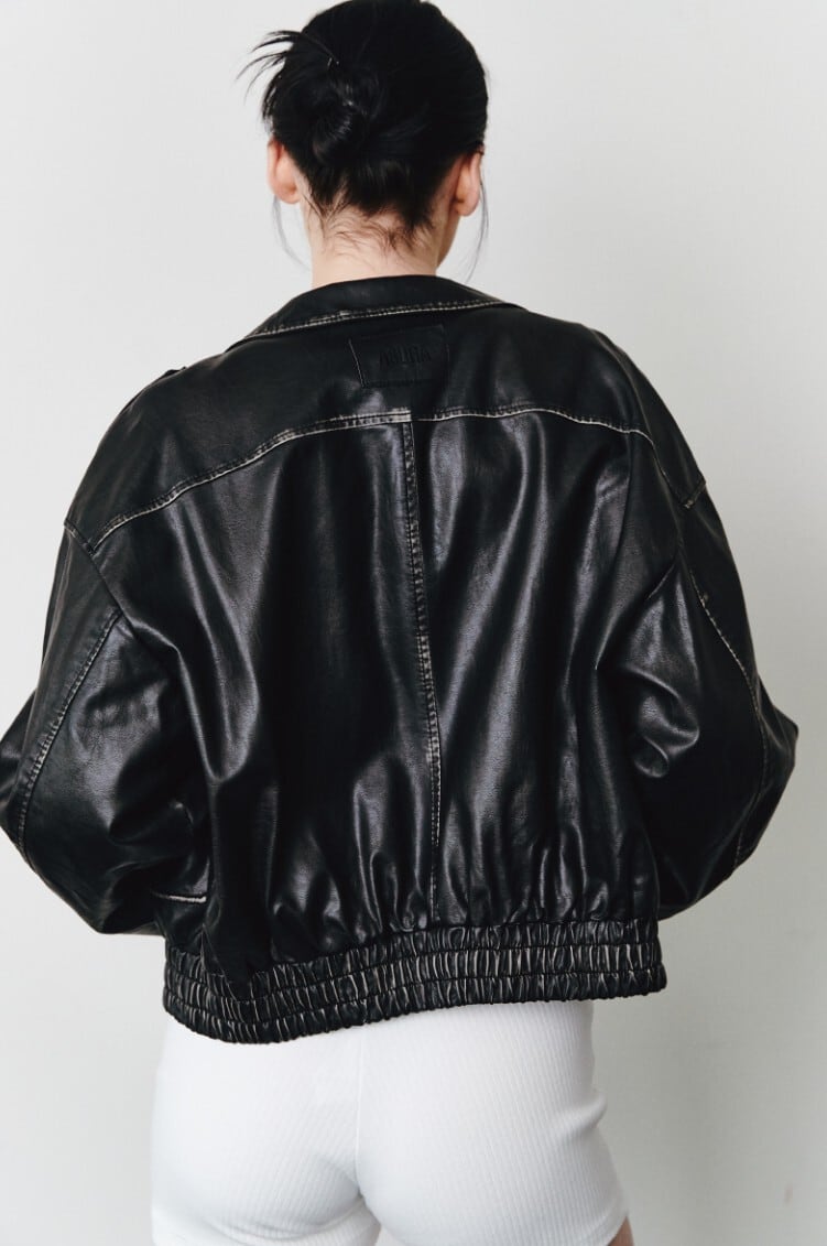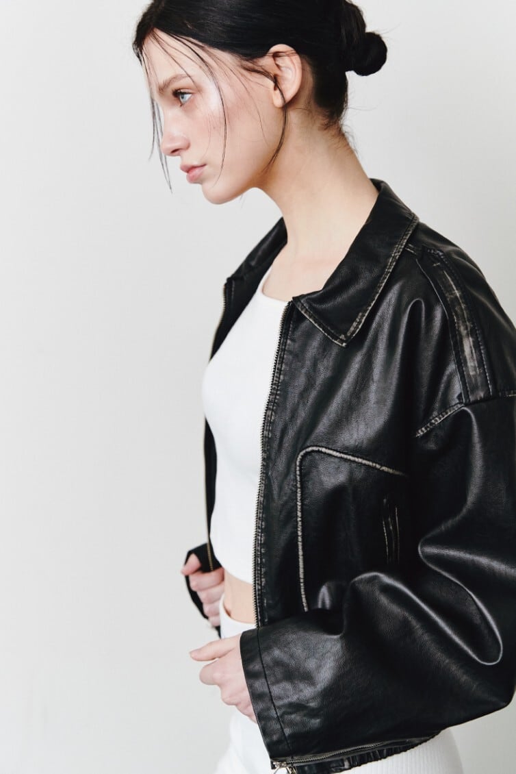 ★BABYMONSTER アサ 着用!!【ASURA】WASHING ECO LEATHER JUMPER [BLACK]