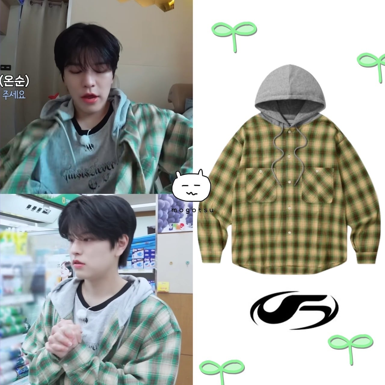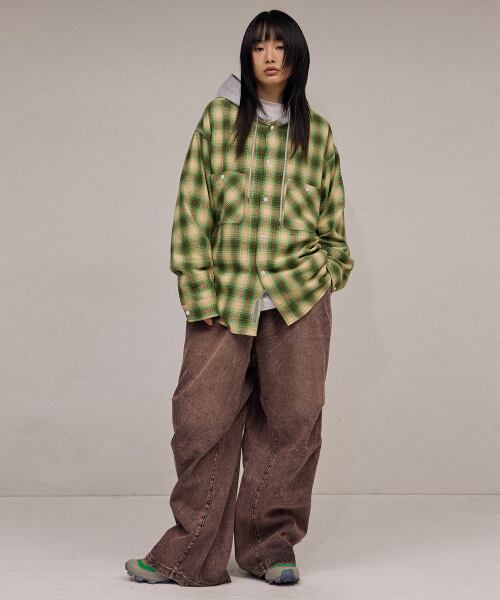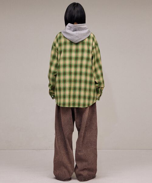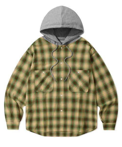 ★Stray Kids スンミン 着用!!【FILLUMINATE】Two Pocket Hoodie Check Shirt-Green