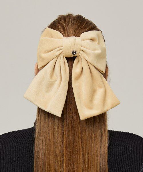 [VVV] Velboa Big Ribbon Hair Pin _ Yellow Beige