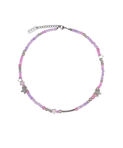 [VVV] Star Cubic metallic Mix Beads Necklace