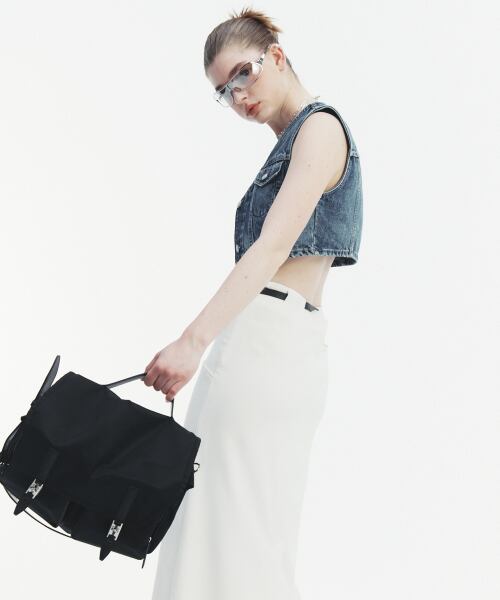 남녀 모두 스타일링이 가능한 캐쥬얼 무드 디자인의나일론 소재를 사용하여 가벼워 착용감이 우수하고,다양한 분리수납이 가능한 숄더백.가죽 핸들 스트랩과 길이 조절 숄더 스트랩 구성되어다양한 연출이 가능.