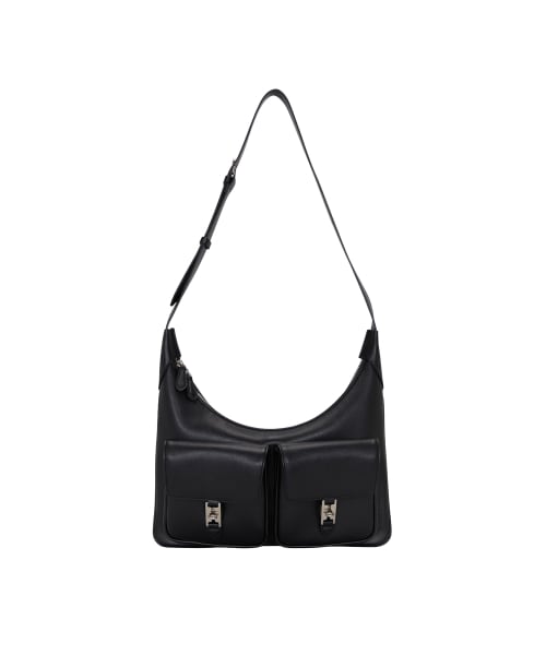 "더블 포켓 포인트 호보 BAG"심플하고 슬림한 바디로 착용감이 좋은 호보백큰 사이즈의 아웃 포켓이 추가로 구성되어다양한 수납이 가능
