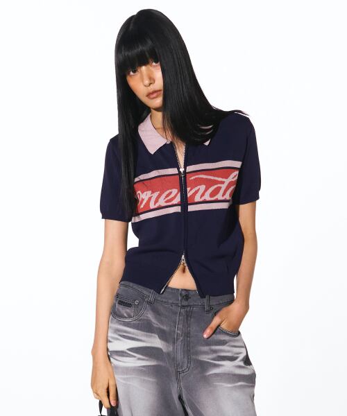 [PRENDA] JACQUARD COLLAR ZIP-UP KNIT NAVY