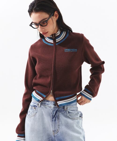 [PRENDA] PRDA COLORING FULL ZIP-UP KNIT BLUISH BROWN