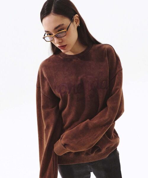 [PRENDA] RIBBON LOGO SALT WASHING SWEATSHIRT WINE