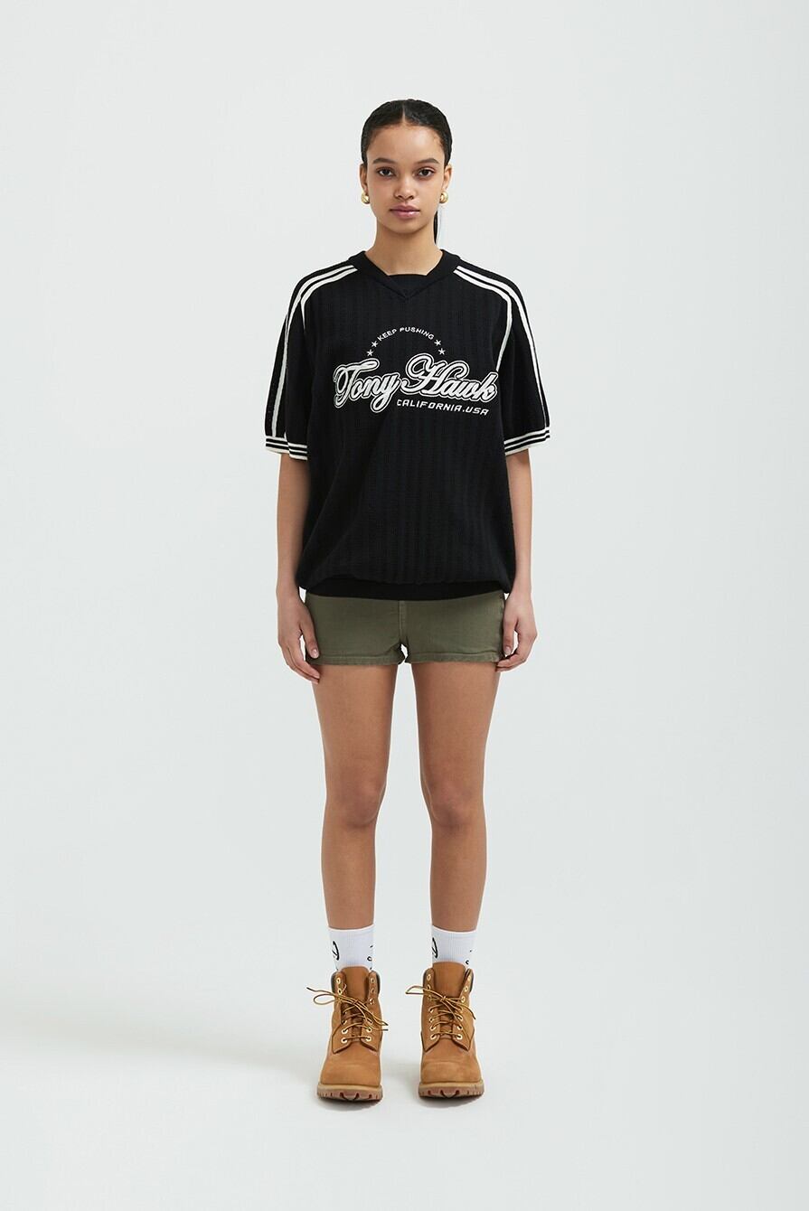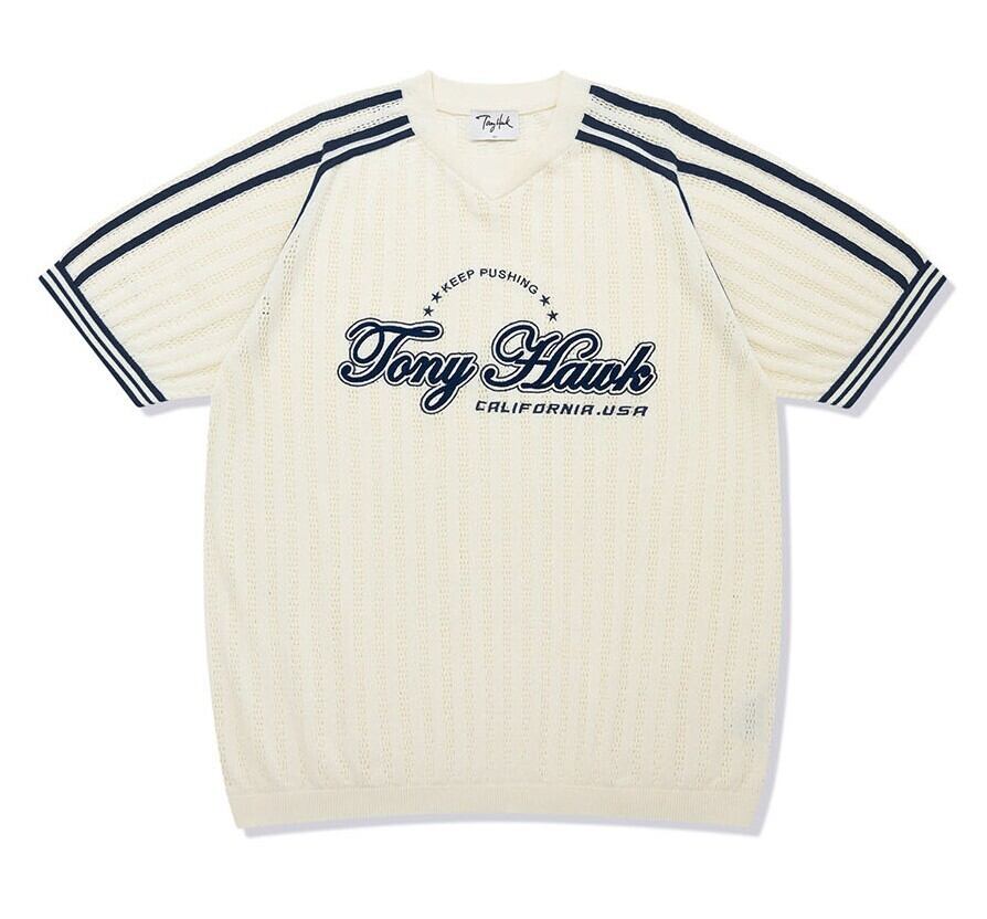 - 「トニーホーク」グラフィック刺繍とスポーティなディテールがポイントの半袖ニットフルオーバー。