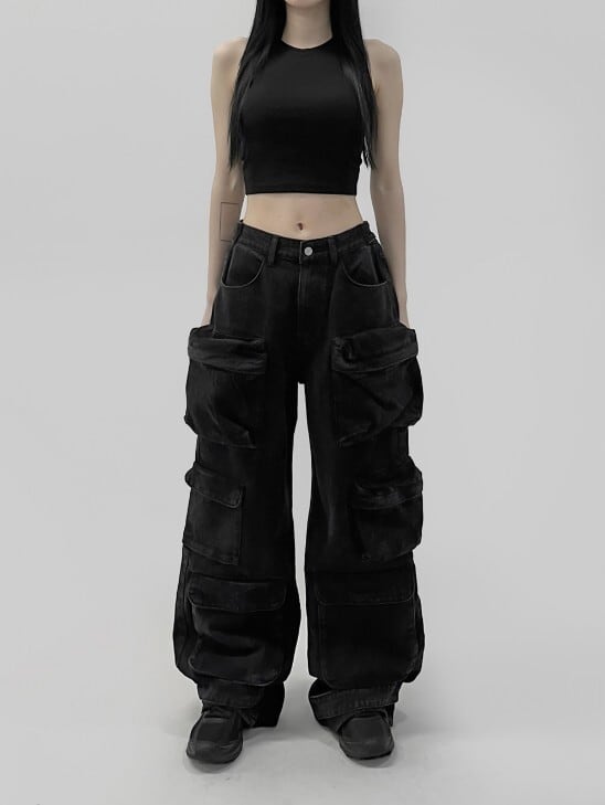 ついに再入荷!!★aespa カリナ 着用!!【MNEM】Lowdon Cargo Wide Denim (2 colors)