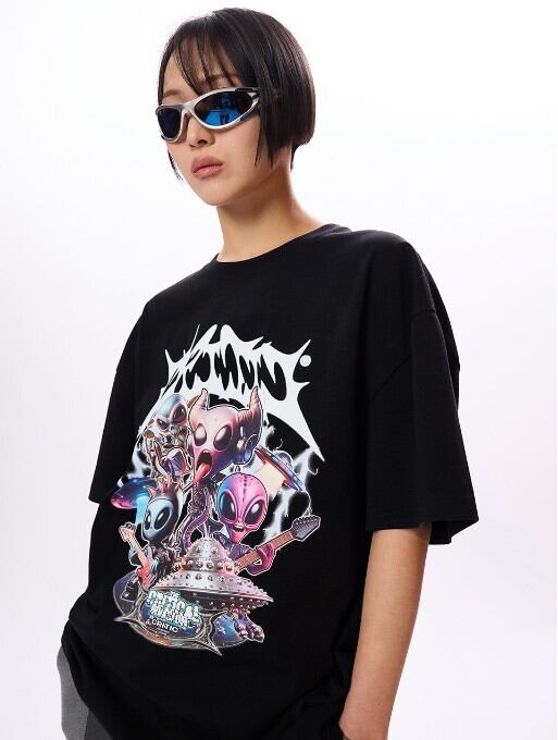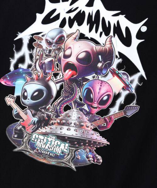 ★BOYNEXTDOOR ソンホ 着用!!【CRITIC】ALIEN INVASION BAND T-SHIRTS BLACK
