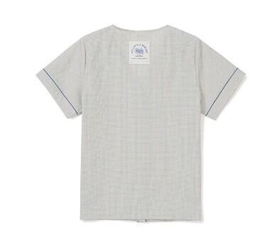 · カラーがないため涼しく着ることができ、ボールドなラペルが特徴の製品