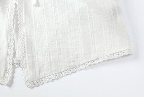 クロップした丈の半袖ブラウスで、ロマンチックな雰囲気を演出できるアイテムです。