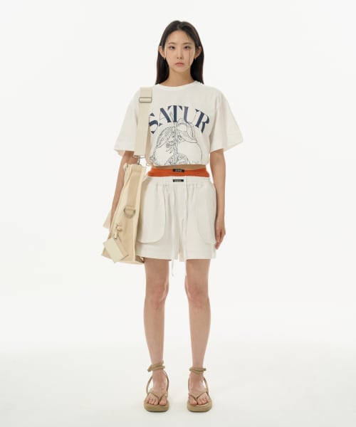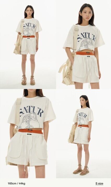 在庫少なめ★Stray Kids スンミン 着用!!【SATUR】Capri Citron Drawing Summer Graphic T-Shirt Resort Ivory
