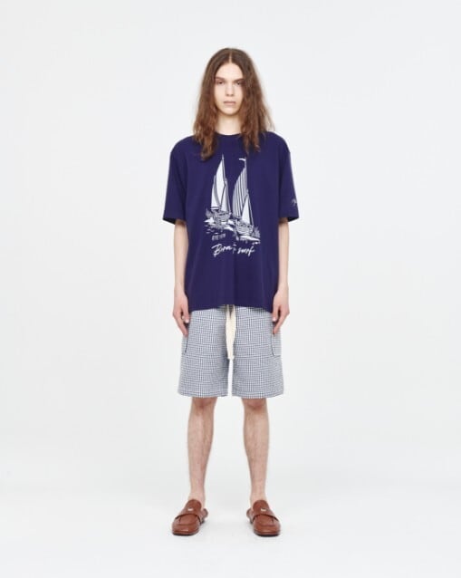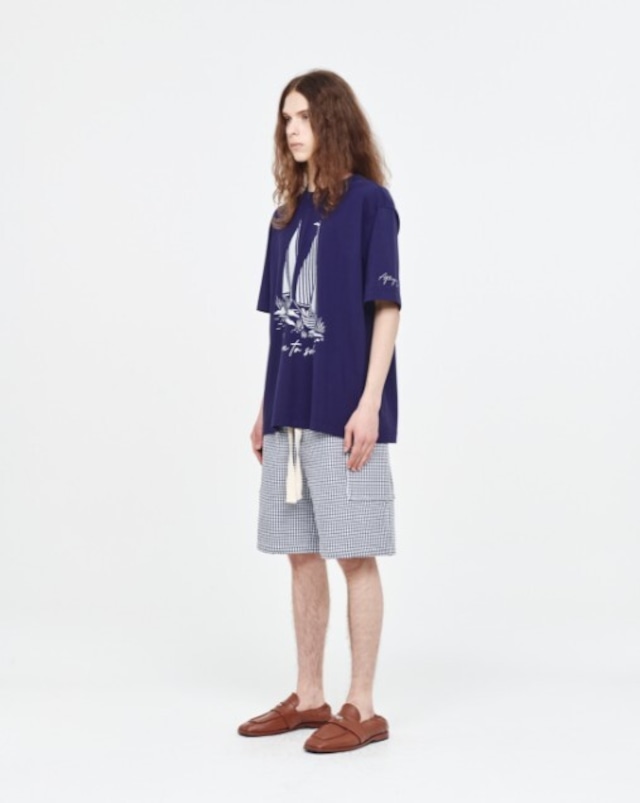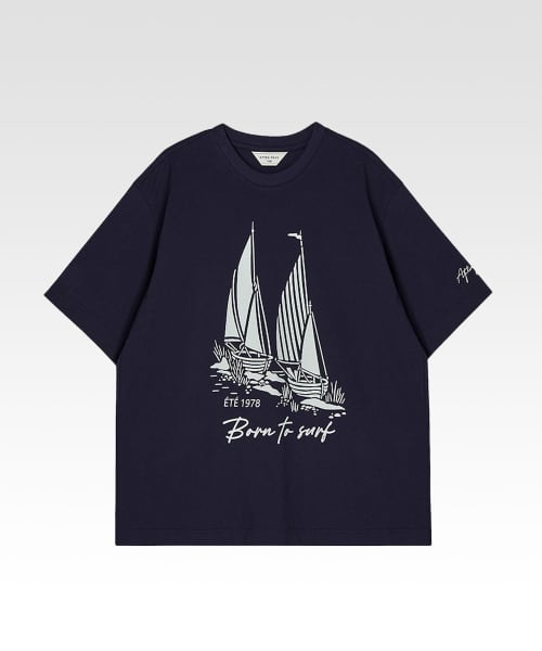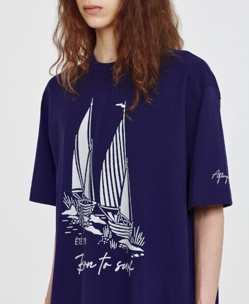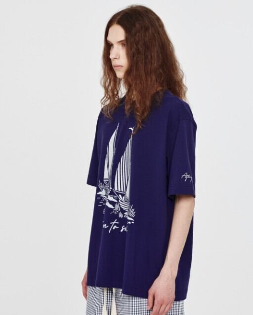 ★TXT テヒョン 着用!!【AFTERPRAY】Sale Boat Printed T-Shirt Navy