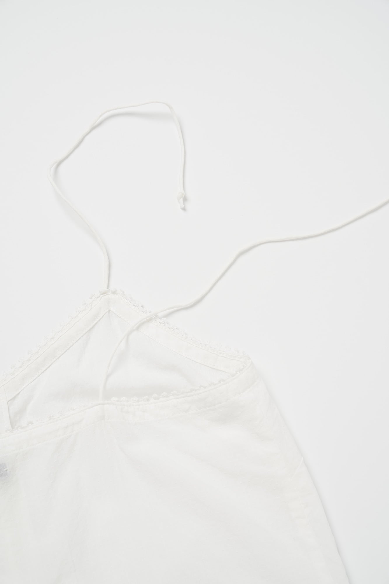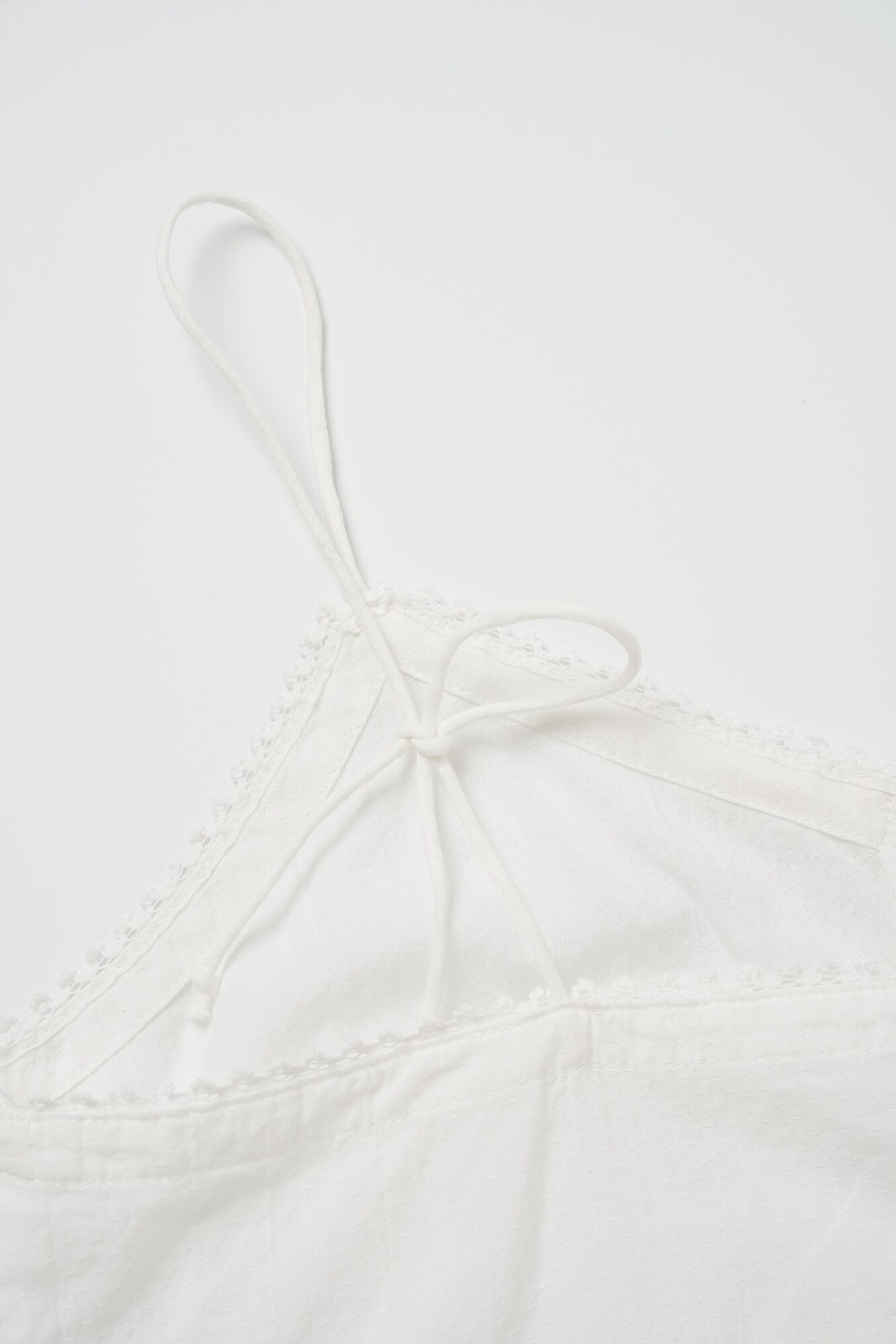 - ドットレースコットン生地で製作されたスリーブレストップです。