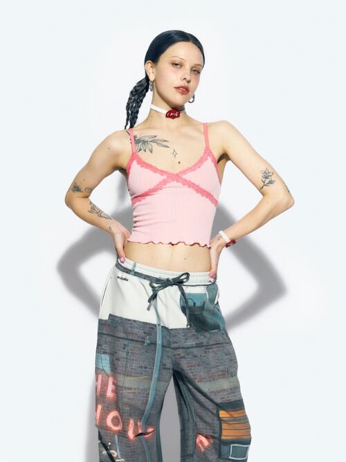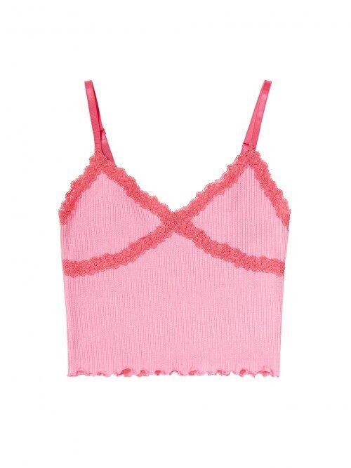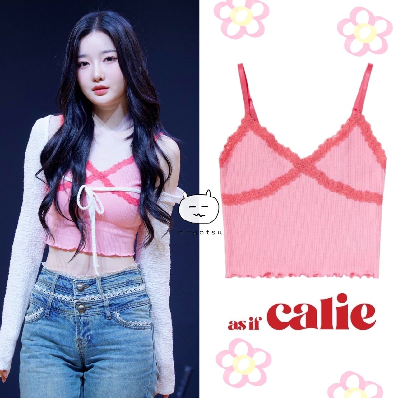 ★tripleS ユヨン 着用!!【ASIF CALIE】FLOWER LACE RIBBED TOP PINK
