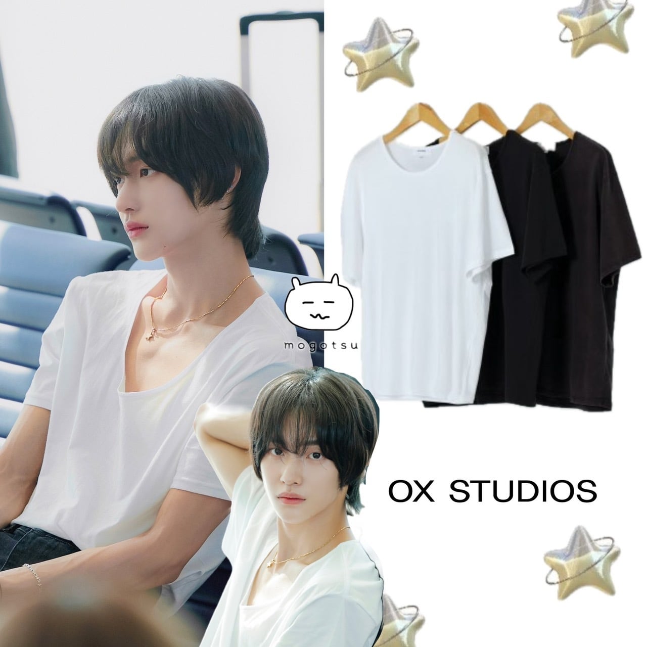 再入荷!★RIIZE ウォンビン 着用!!【OX STUDIOS】エッセンシャル Uネック Tシャツ - 2COLOR