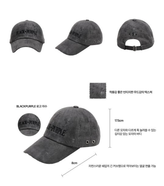 ★IU 着用!!【BLACK PURPLE】Vortex side eyelet cap - charcoal
