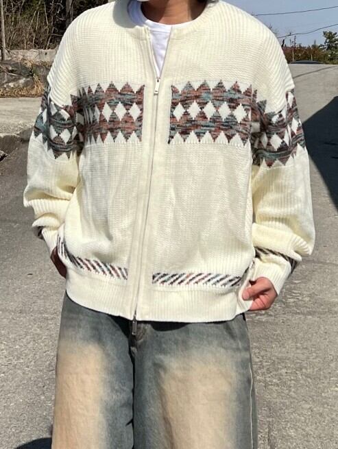 ターシャ オーバー ニット ジップアップ (unisex, 2color)