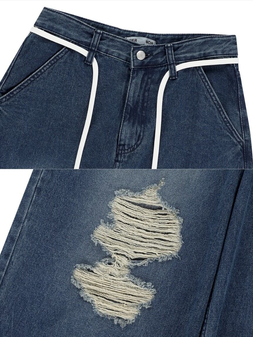 ★(G)I-DLE ウギ 着用!!【NIIER NOR】DAMAGED BALLOON DENIM PANTS_INDIGO