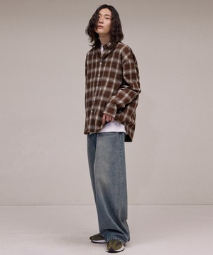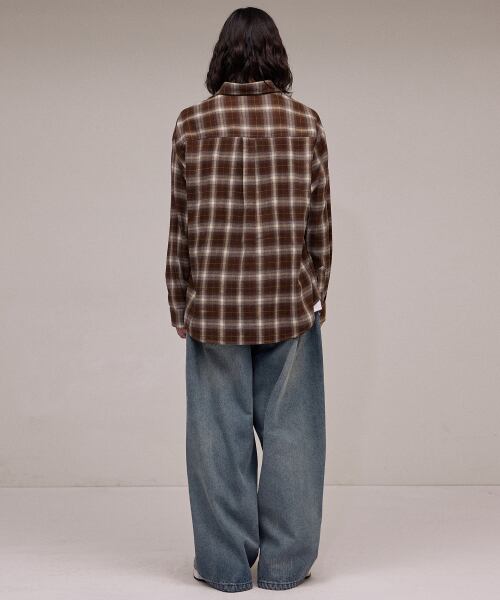 ★IVE ユジン 着用!!【FILLUMINATE】Overfit Plaid Check Shirt-Brown