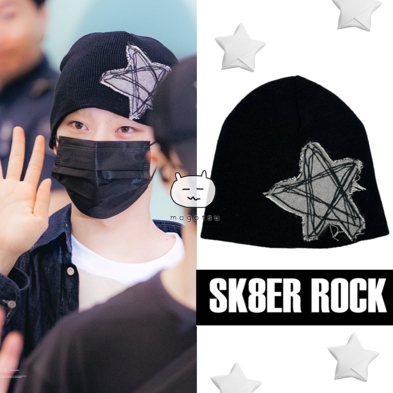 ★ENHYPEN ソヌ 着用!!【SK8ER ROCK】Doodle Star Short Beanie (Black)