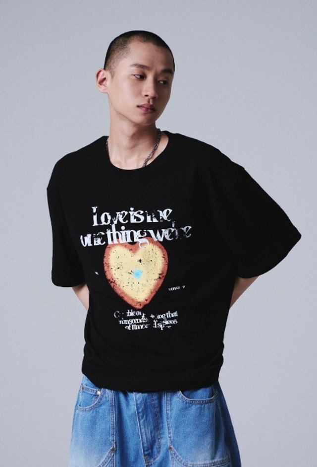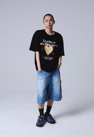 ★CRAVITY ソンミン 着用!!【TRAVEL】HEARTSPACE OVER FIT TEE BLACK