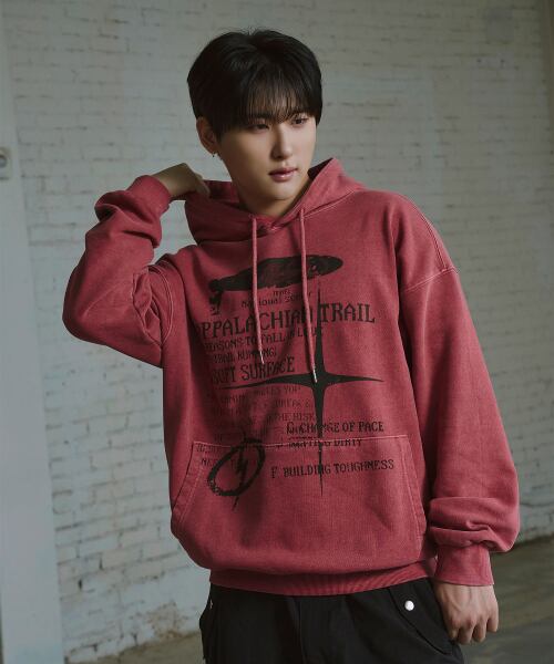 トレカ付き!★CRAVITY ウビン 着用!!【TRAVEL】REASON TRAIL PIGMENT HOODIE SANGRIA RED
