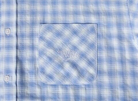 ★Stray Kids ハン 着用!!【FLUKE】スラムロゴ 刺繍 ポケット チェック シャツ スカイ