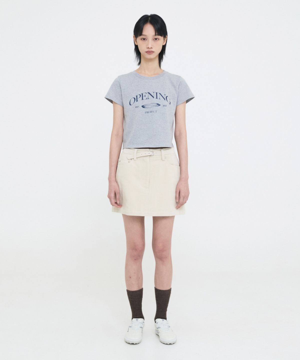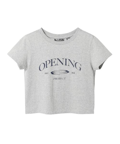 条件付き数量限定トレカ付き!★IVE レイ 着用!!【OPENING PROJECT】W Cropped Serifs Lettering Half T Shirt - Grey