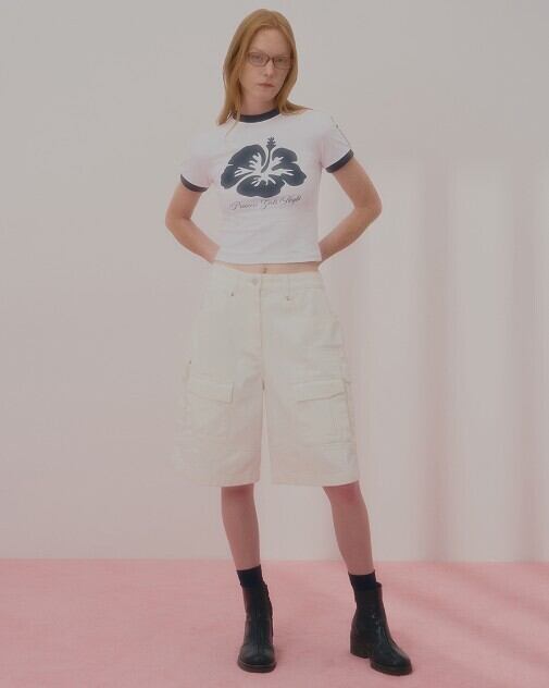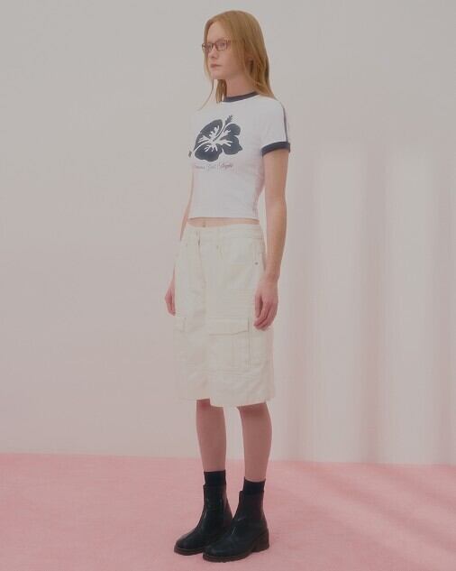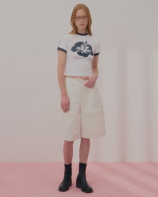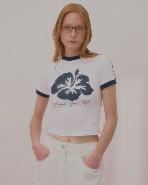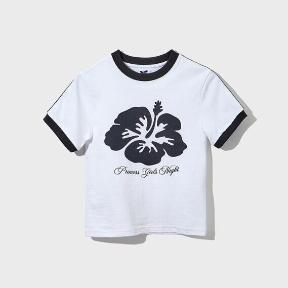 ★ fromis_9 セロム 着用!!【NCOVER】アロハ フラワー 点滴 クロップ 半袖 Tシャツ ホワイト