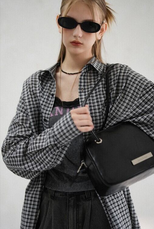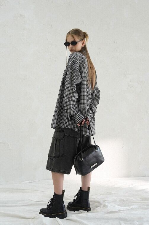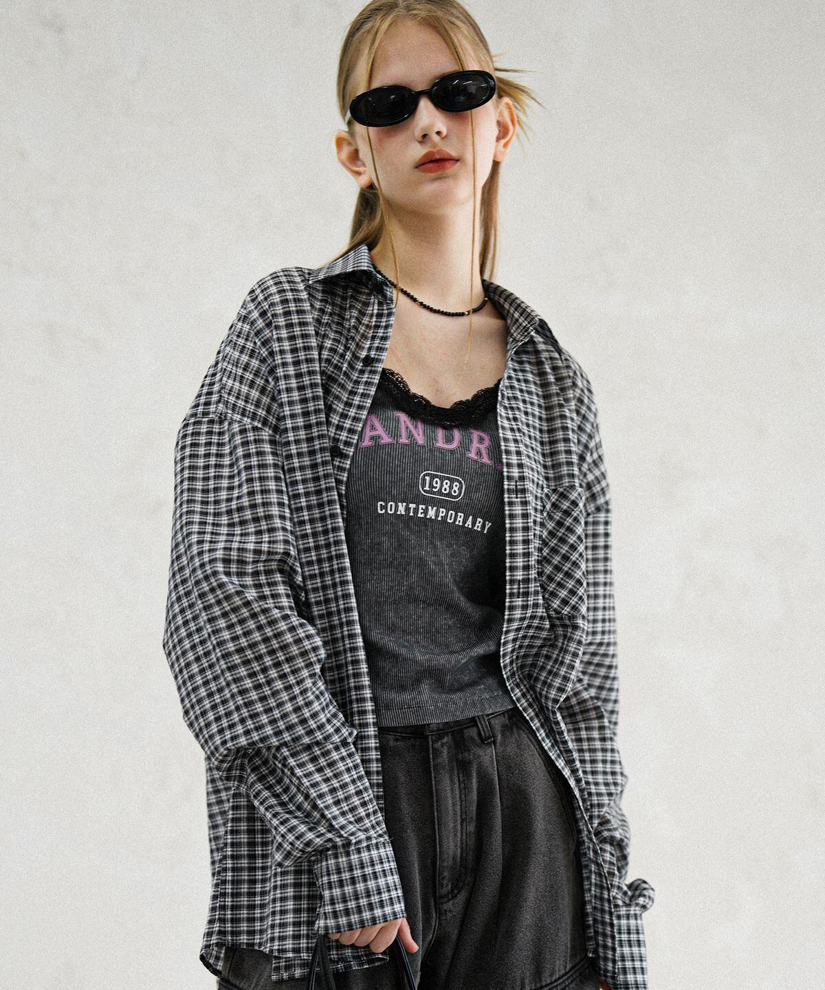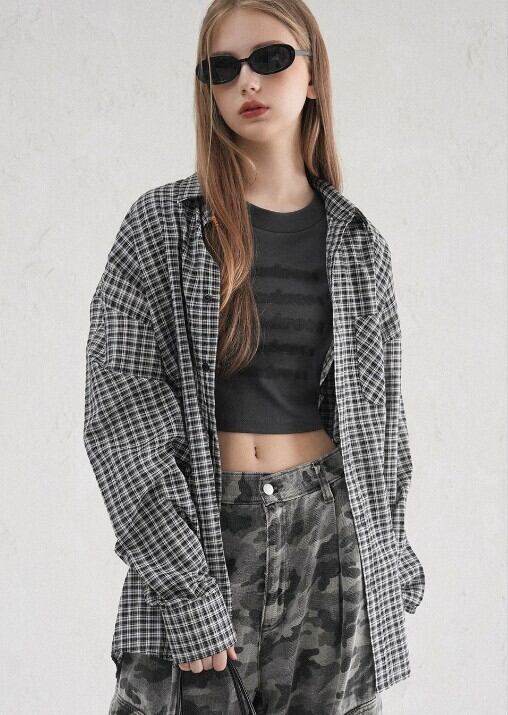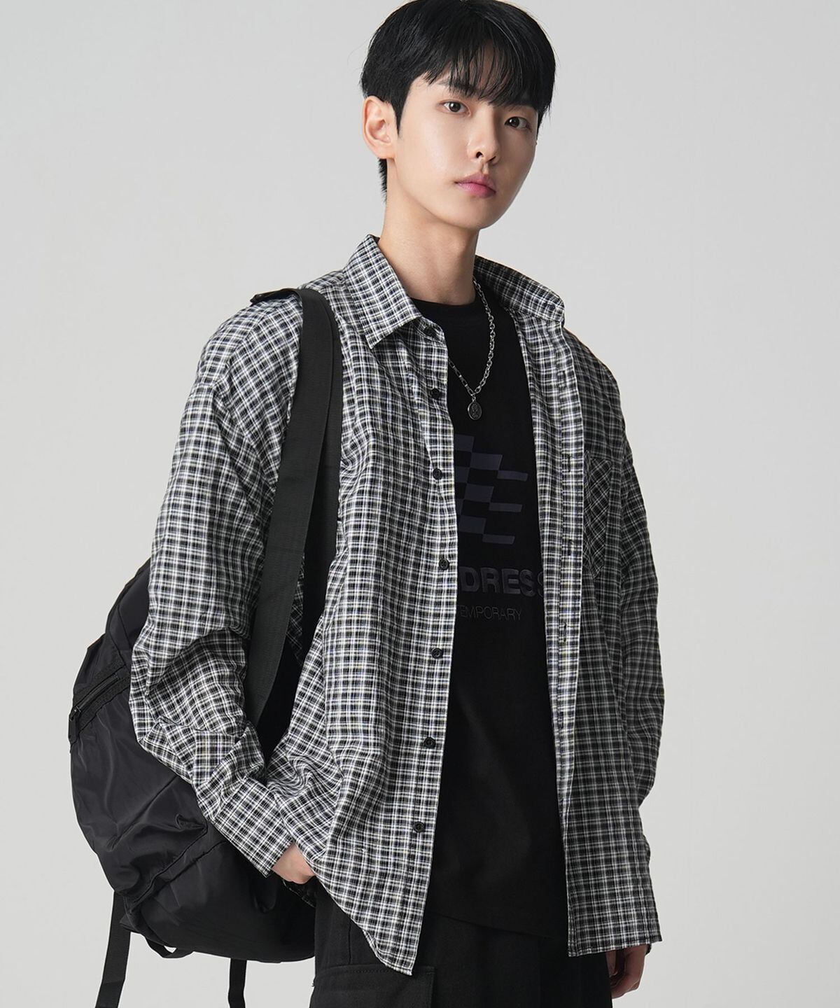 ★aespa ニンニン 着用!!【AVANDRESS】OL Overfit Check Shirt BLACK