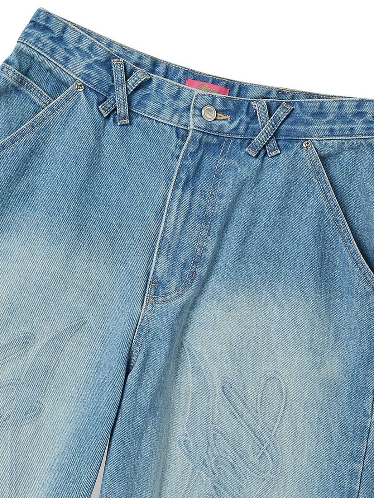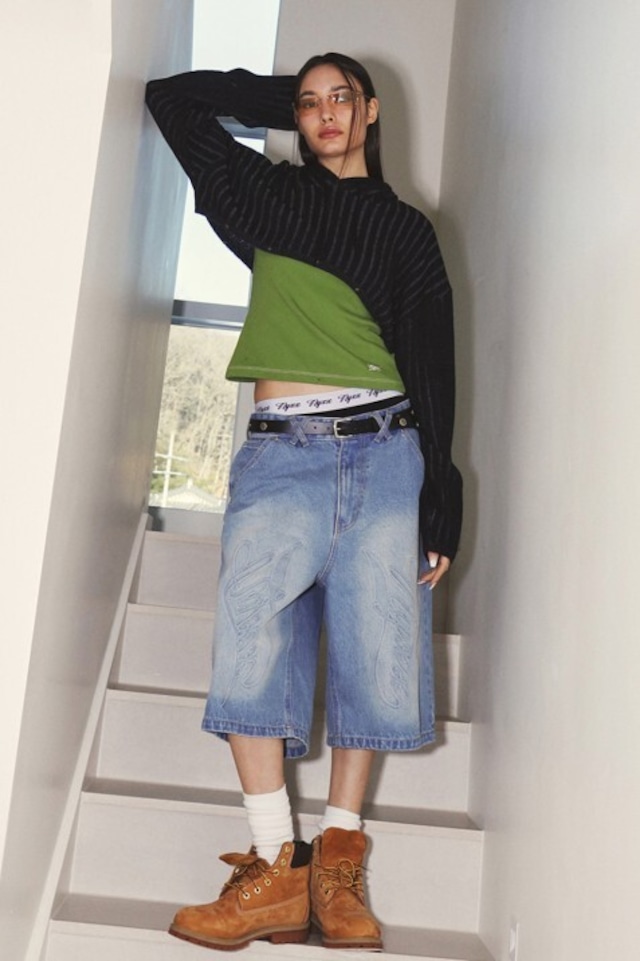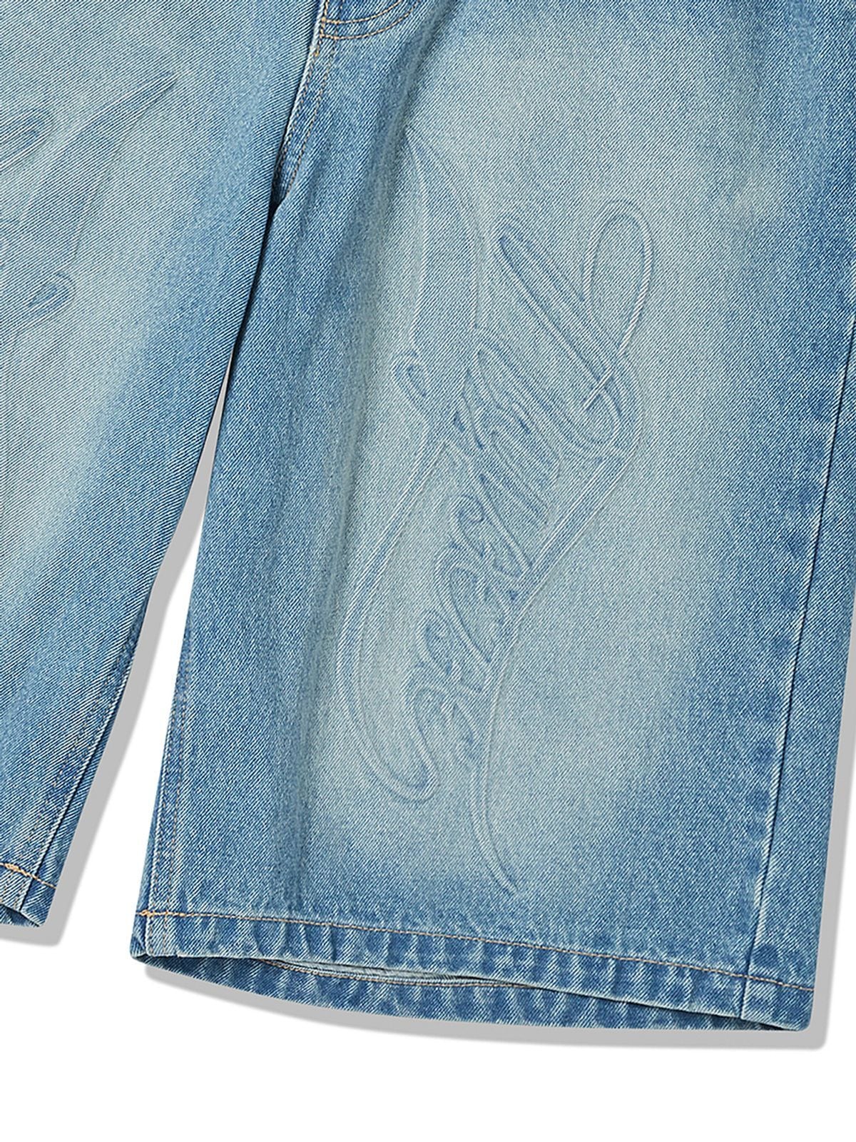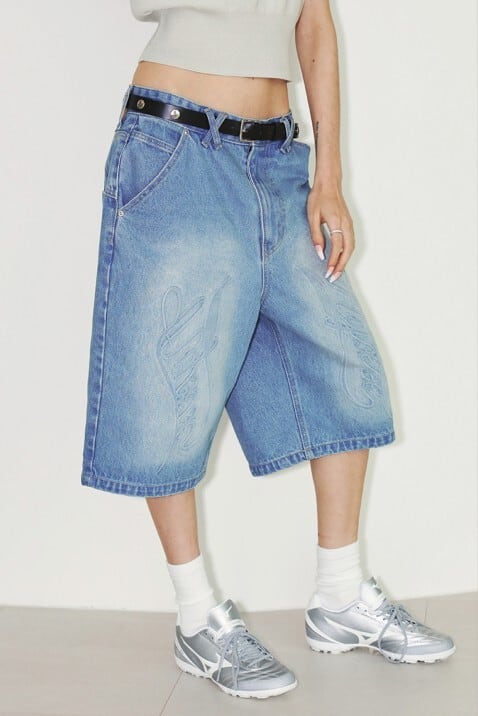 ★NCT WISH リョウ 着用!!【NYXX】EMBOSSED DENIM HALF PANTS LIGHT BLUE