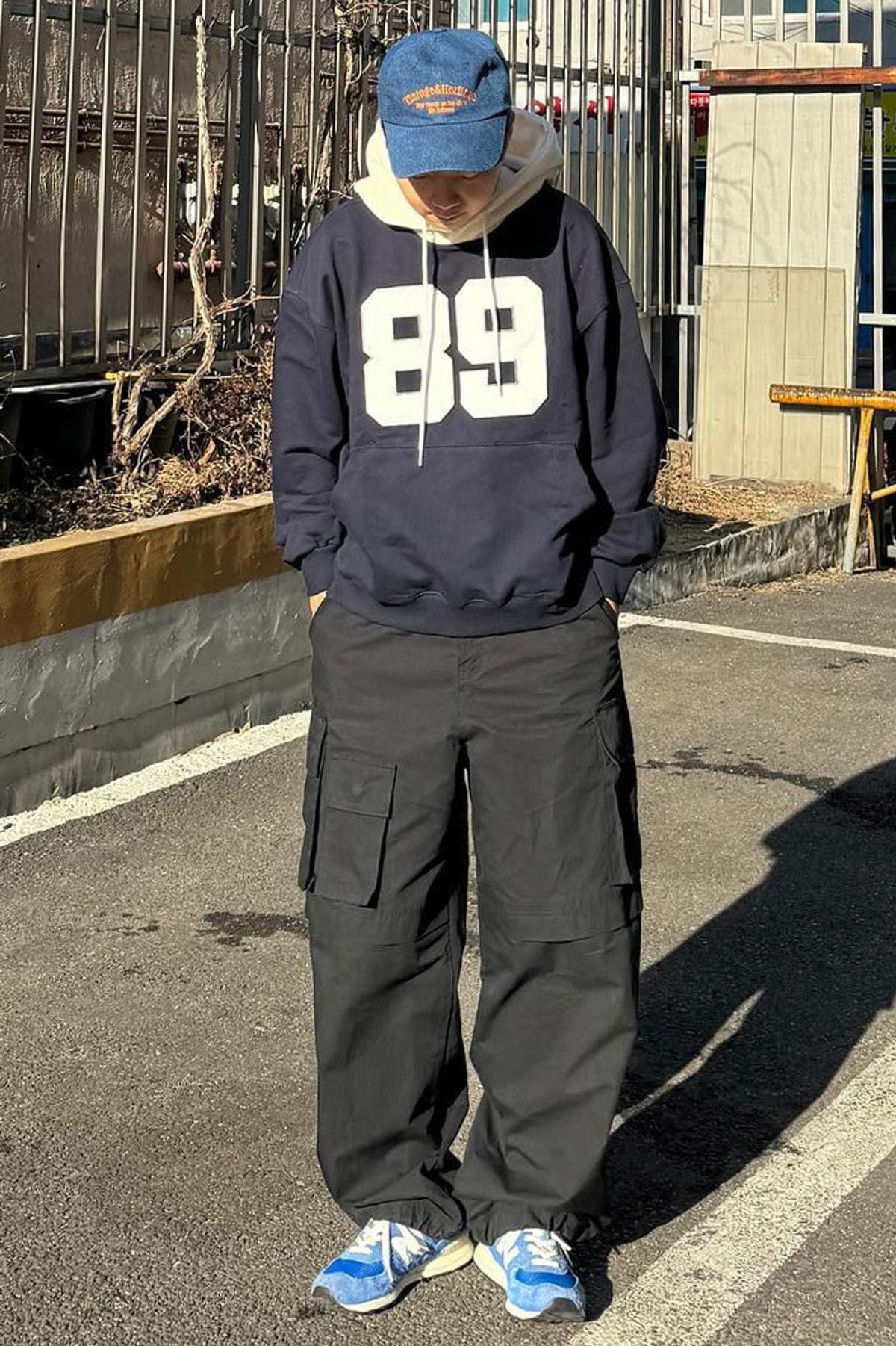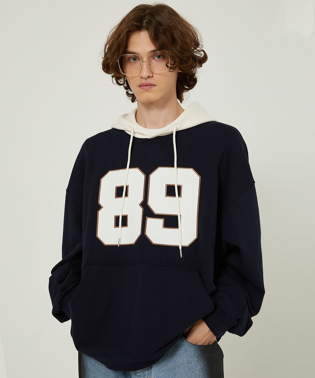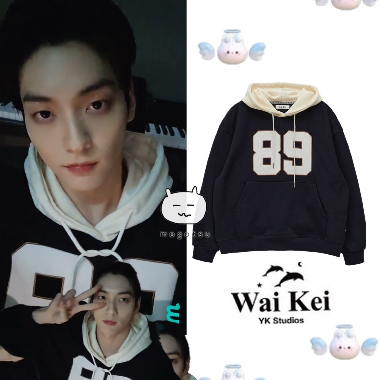 今だけセール!★TXT スビン 着用!!【WAIKEI】Color block 89 logo hoodie NAVY