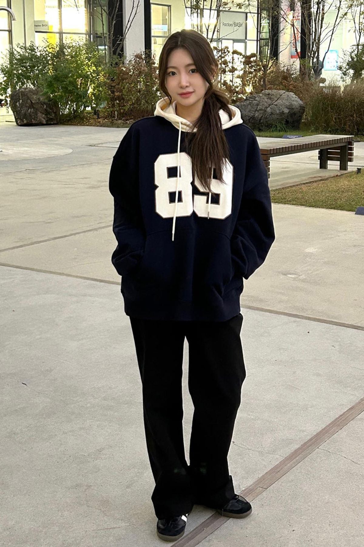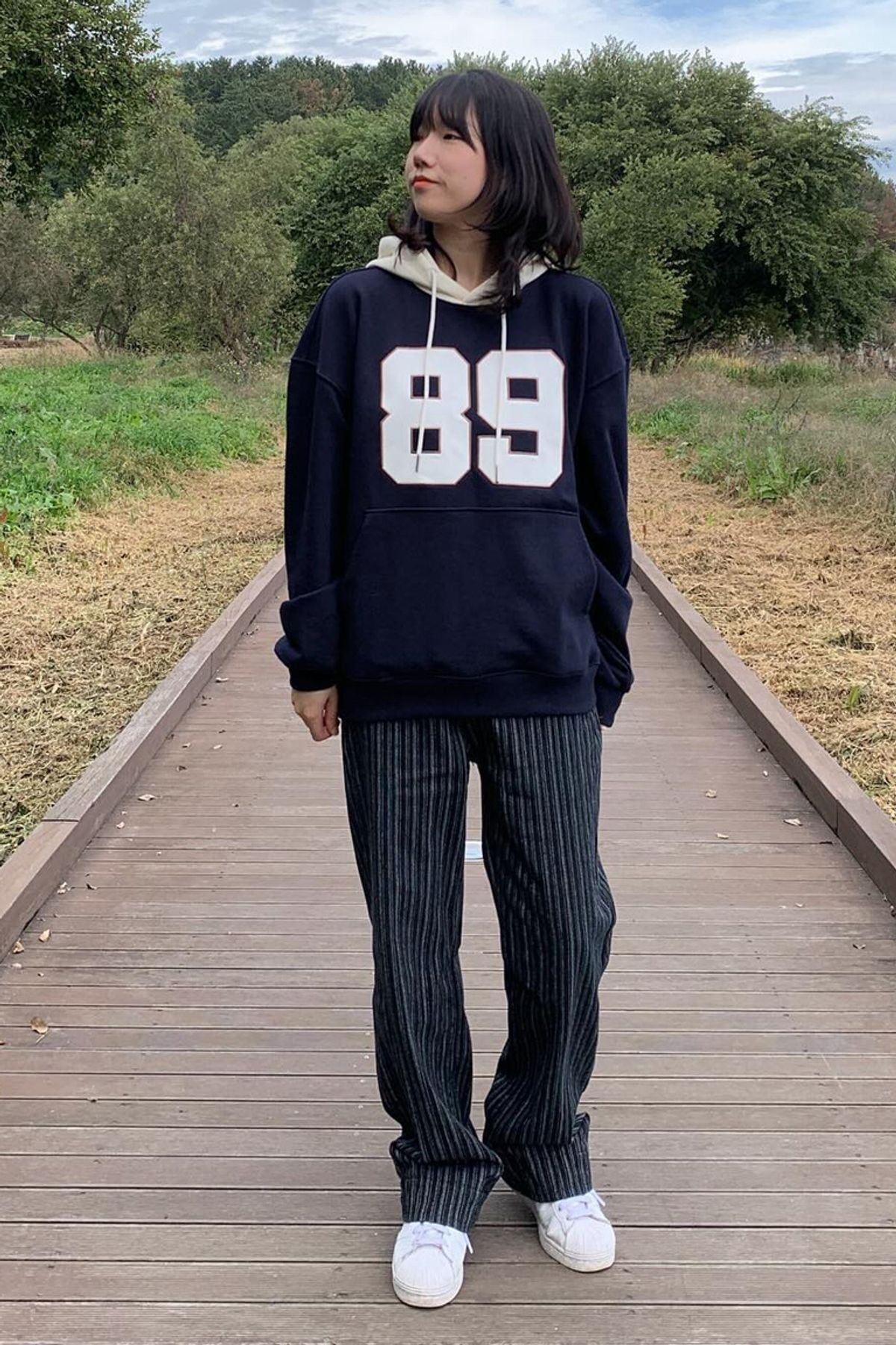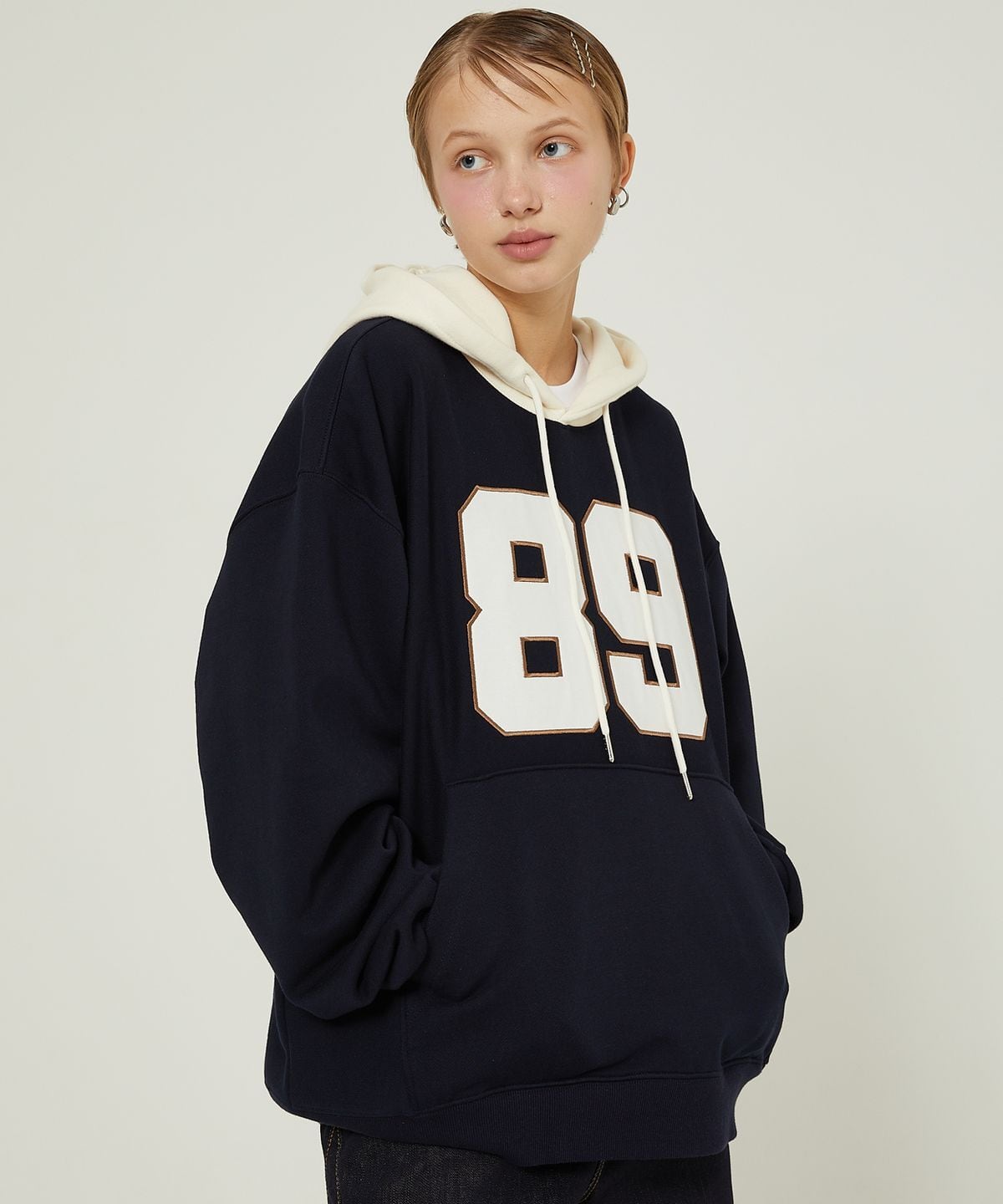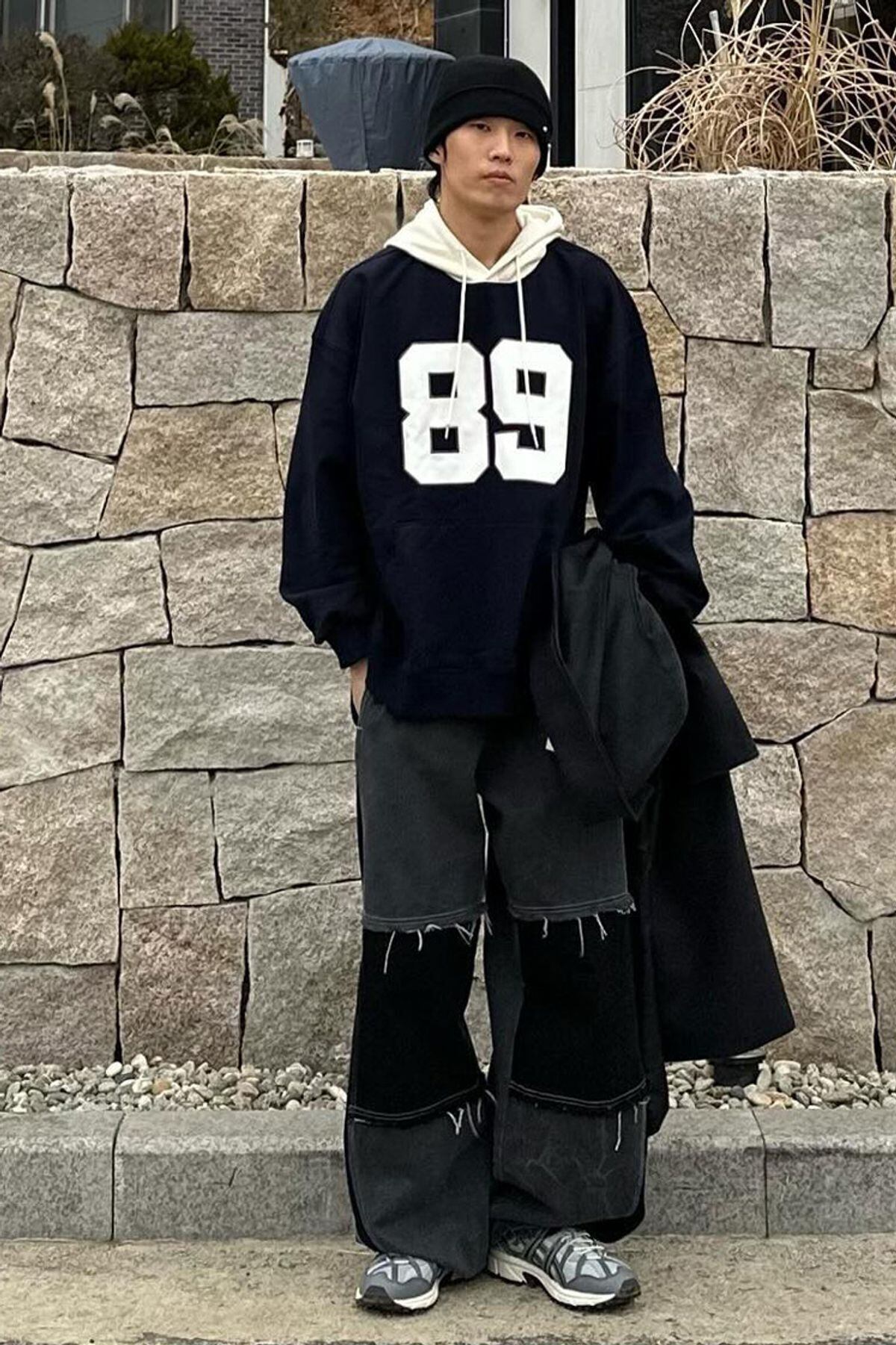 今だけセール!★TXT スビン 着用!!【WAIKEI】Color block 89 logo hoodie NAVY