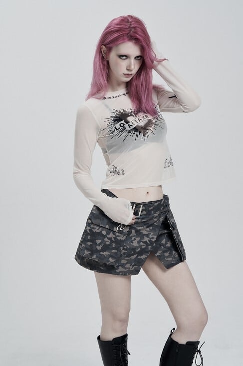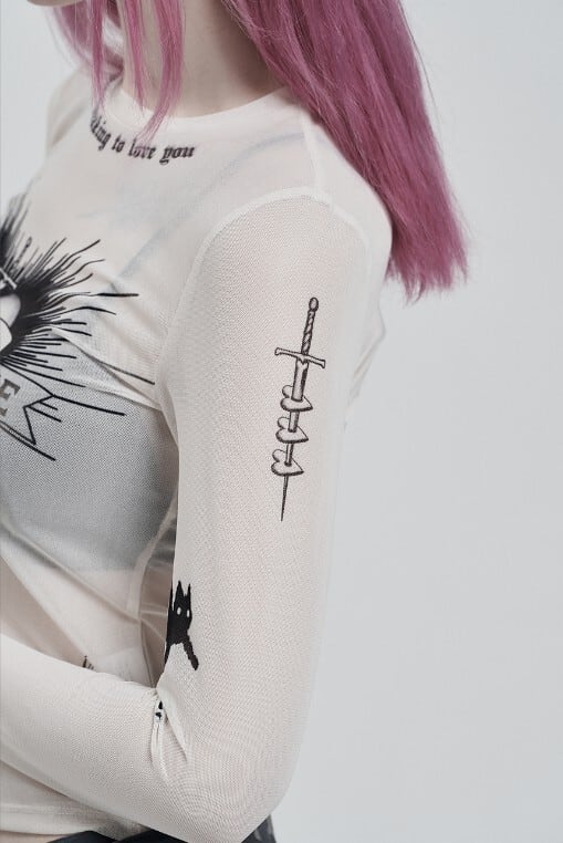 在庫少なめ!★IVE ウォニョン 着用!!【ILLIO】BEIGE LOVER TATTOO MESH LONGSLEEVE